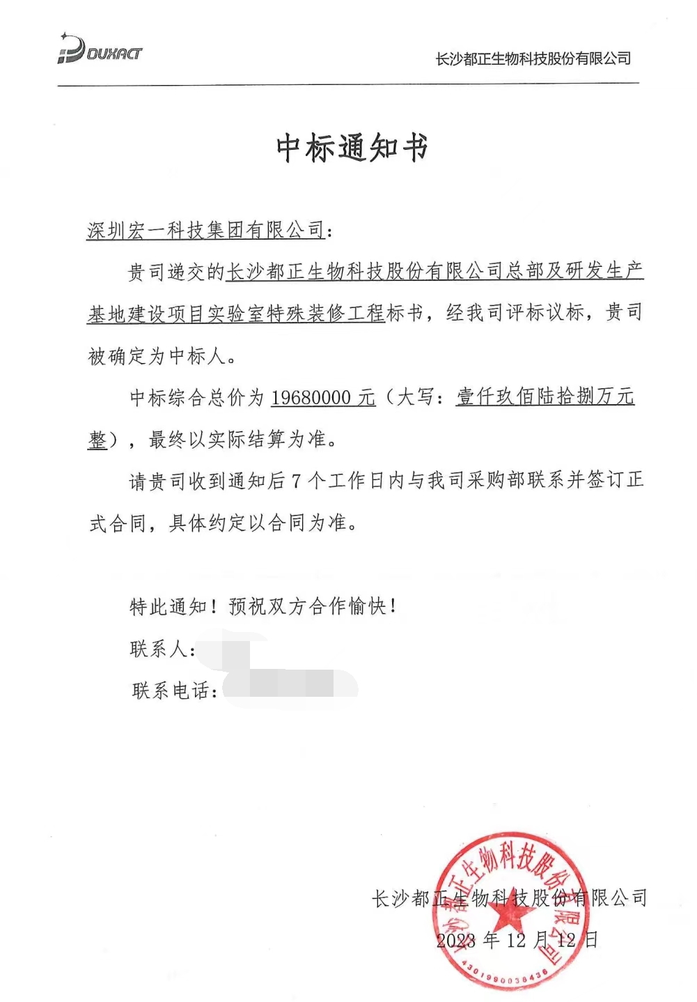 克日,长沙都正生物科技股份有限公司总部及研爆发产基地实验室特殊装修项目开标: